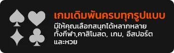 เพื่อนๆ จะได้สัมผัสกับประสบการณ์การเดิมพันที่ครบวงจรที่สุด ไม่ว่าจะเป็นคาสิโนสด สล็อต เกมไพ่ แทงบอล หวย และอื่นๆ อีกมากมาย ทุกเกมได้รับการคัดสรรมาอย่างดีจากผู้ให้บริการชั้นนำระดับโลก มาพร้อมกราฟิกสวยงามคมชัด และระบบการเล่นที่เสถียร ไม่มีสะดุดแน่นอน